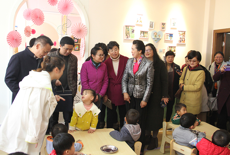 专题讲座后,和红梅主席和邢渭东副厅长还一同前往beat365英国官网附属幼儿园为项目示范点挂牌,并深入园区指导幼儿园工作。