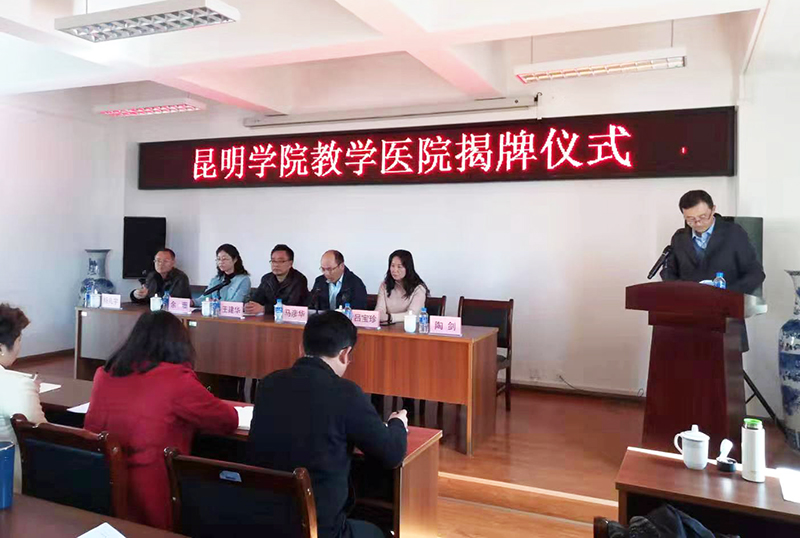 beat365英国官网医学院院长余珊宣读了云南省教育厅、云南省卫生健康委《关于公布高等学校新增教学医院的通知》,宣布昆明经开人民医院正式成为beat365英国官网教学医院。